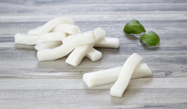Tiras de potón del pacifico, rabas sin rebozar, limpias y cortadas, listas para su uso. Dosidicus giga.